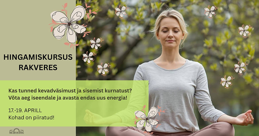 TASUMINE: Palume tasuda ülekandega Art of Living Education, EE332200221044867486. Selgitusse kirjutada oma ees- ja perekonnanimi ning AOL 1. TASEME kursus 17.-19.04.26.